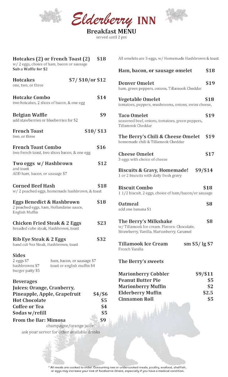 Nestled in the charming Seaside, Oregon, the Elderberry Inn serves a delightful menu that showcases a passion for made-from-scratch culinary creations. This vintage eatery has quickly garnered a reputation for quality and friendliness, offering dishes that pay homage to authentic Oregon flavors. From hearty clam chowder to satisfying breakfast staples like Eggs Benedict and Biscuits & Gravy, each plate promises a taste of comfort.